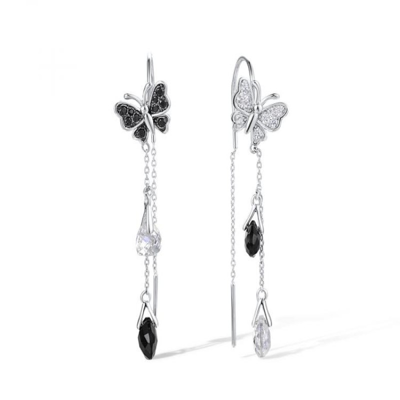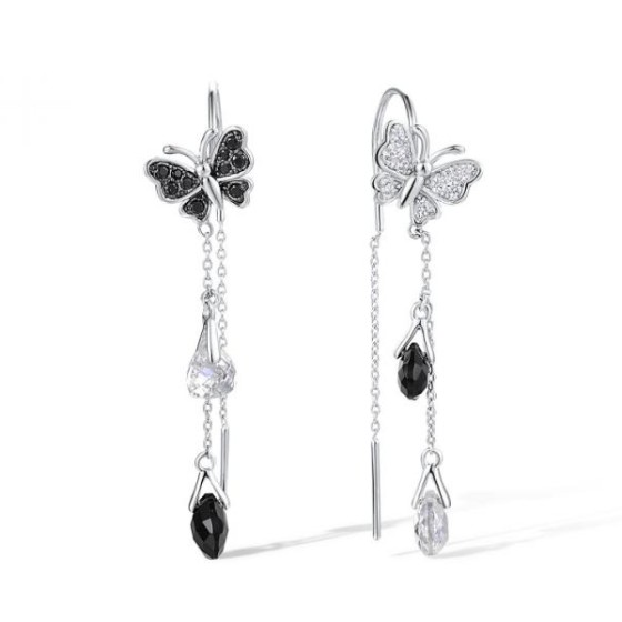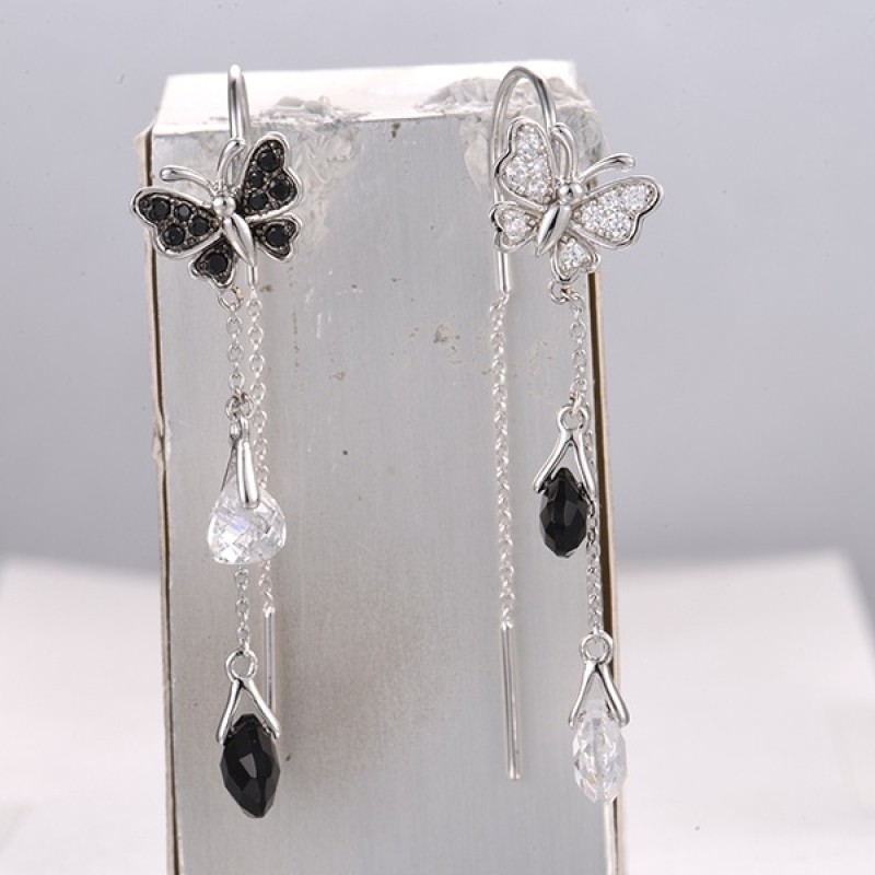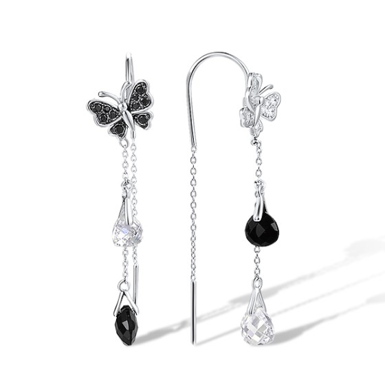 Sterling Silver w/ Black White Plating Earrings Black spinel,Onyx,White Cubic Zirconia (E318123BSOZSK925)