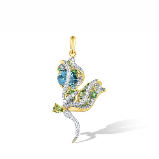 Sterling Silver w/ IONIC YELLOW PLATING Pendant Blue Spinel,Green Nano Cubic Zirconia (Per,Green Spinel,White Cubic Zirconia (P318118MULSP925)
