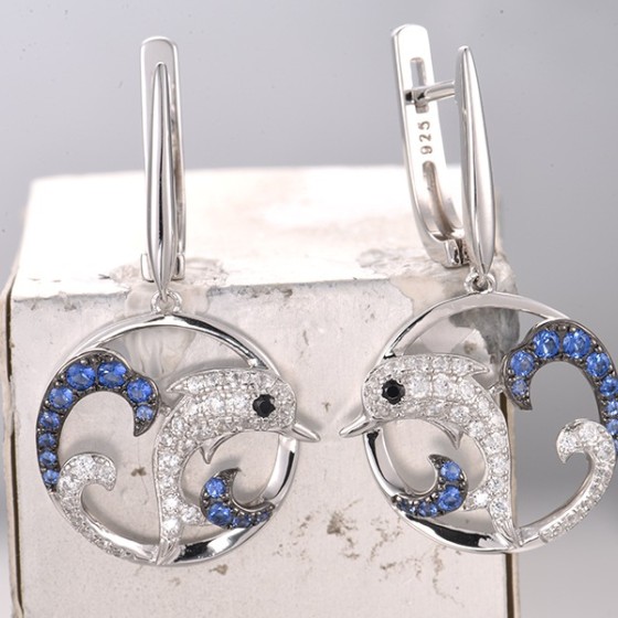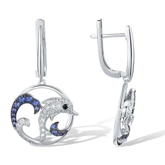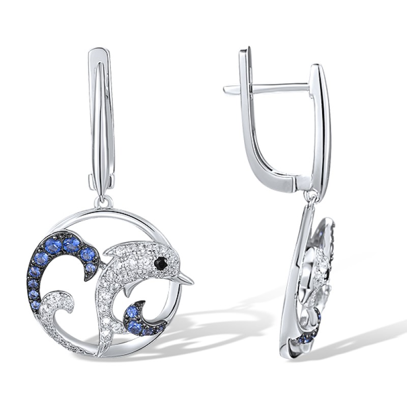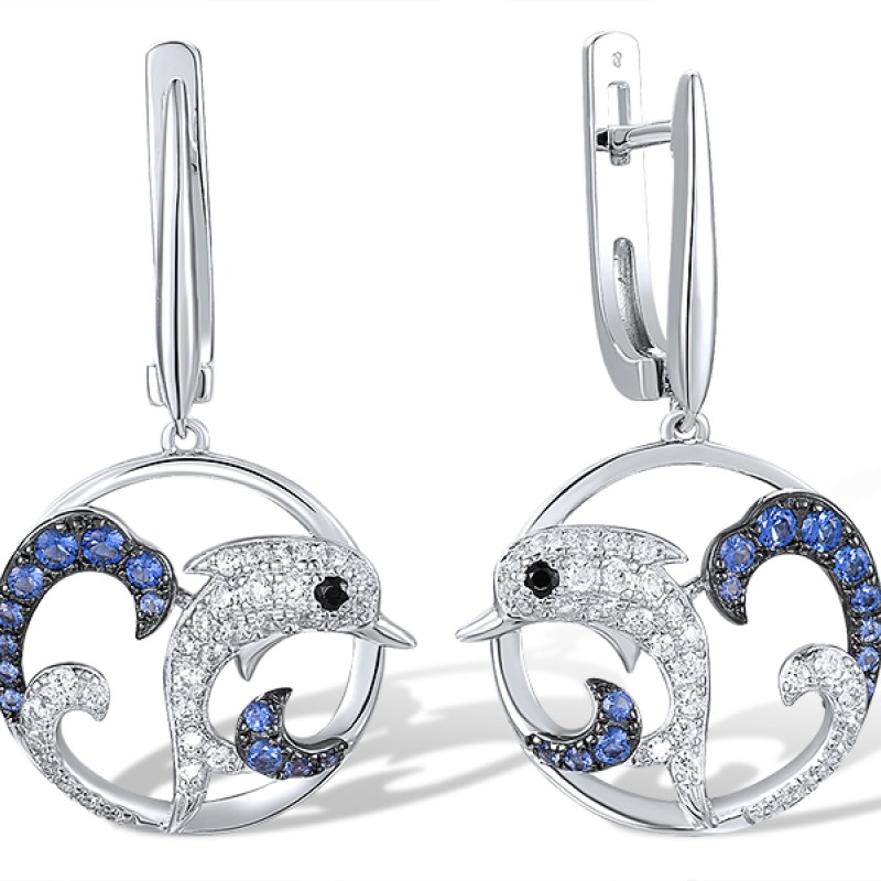 Sterling Silver w/ Black White Plating Earrings Black spinel,Blue Nano Cubic Zirconia,White Cubic Zirconia (E318111BNSZSK925)