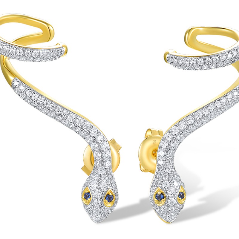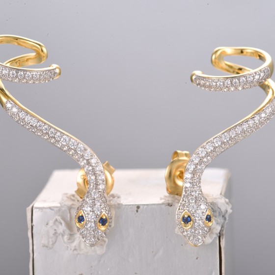 Sterling Silver w/ IONIC YELLOW PLATING Earrings Blue Nano Cubic Zirconia,White Cubic Zirconia (E318085BZZSP925)