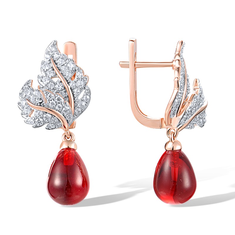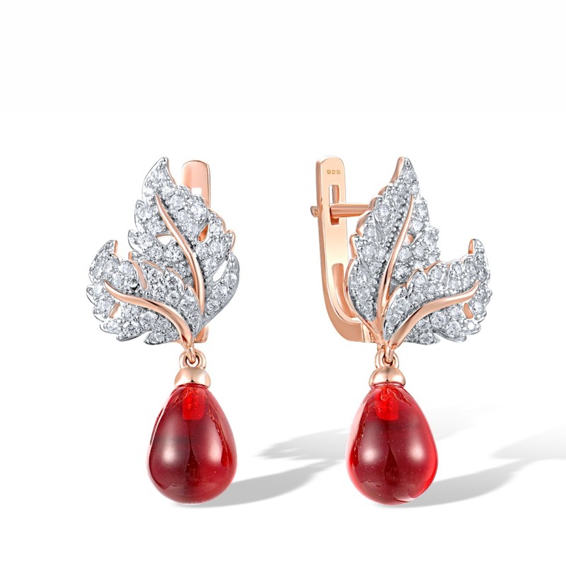 Sterling Silver w/ IONIC ROSE PLATING Earrings Red Glass,White Cubic Zirconia (E318074REGZSQ925)