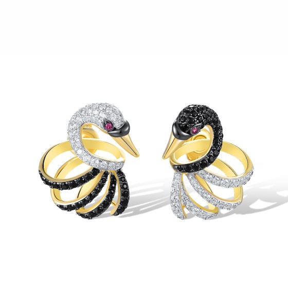 Sterling Silver w/ Yellow Black White Plating Earrings Black spinel,Created Ruby,White Cubic Zirconia (E318056BCRZSZ925)
