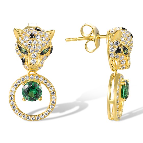 Sterling Silver w/ Yellow Black Plating Earrings Black spinel,Green Spinel,White Cubic Zirconia (E317920BGSZSC925)
