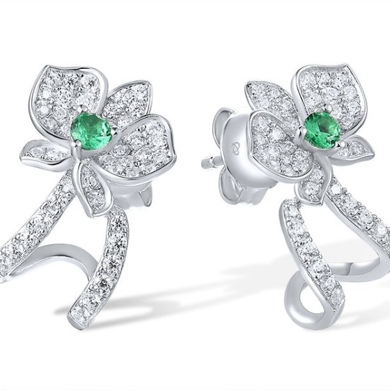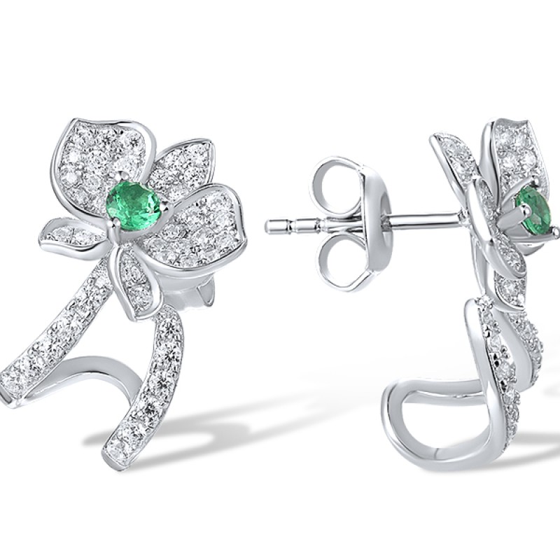 Sterling Silver Earrings Green Spinel,White Cubic Zirconia (E317273GSZSL925)