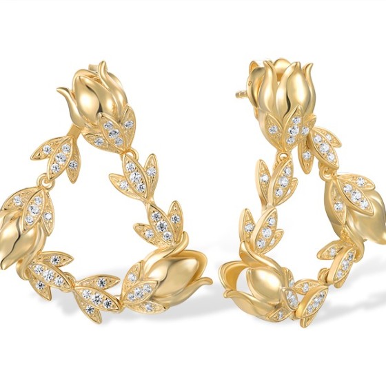 Sterling Silver w/ Yellow Plating Earrings White Cubic Zirconia (E317246WCZSY925)