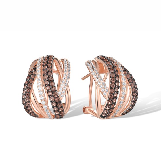Sterling Silver w/ Rose Black Plating Earrings Nano Brown Spinel,White Cubic Zirconia (E316840NBZSD925)