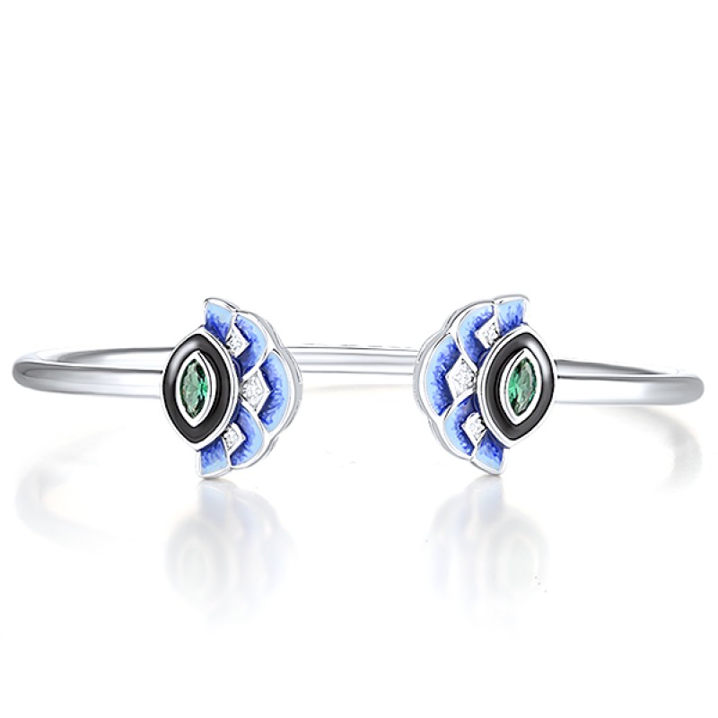 Sterling Silver Bangle Enamel,Green Spinel,White Cubic Zirconia (G315141ENASL925)