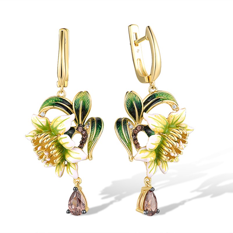 Sterling Silver w/ Yellow Black Plating Earrings Chocolate CZ,Enamel,White Cubic Zirconia (E314965ENASC925)