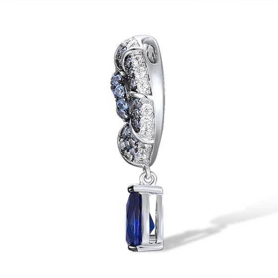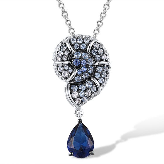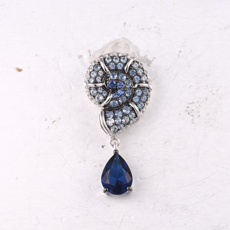 Sterling Silver w/ Black White Plating Pendant Blue Glass,Blue Nano Cubic Zirconia,Blue Spinel,White Cubic Zirconia (P312835MULSK925)