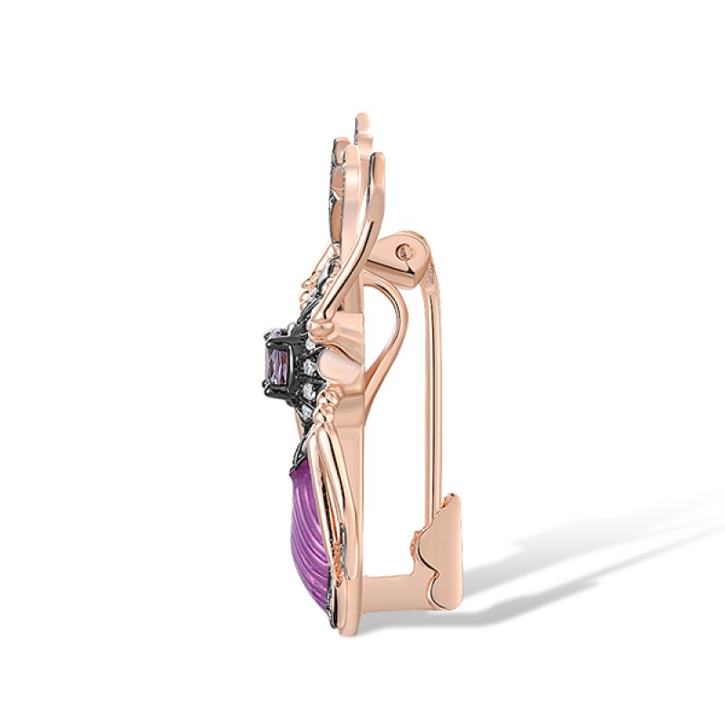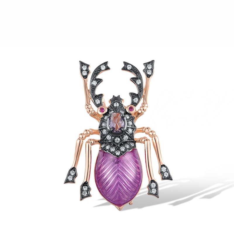 Sterling Silver w/ Rose Black Plating Brooch Created Ruby,Enamel,Purple Glass,White Cubic Zirconia (O312383ENASD925)