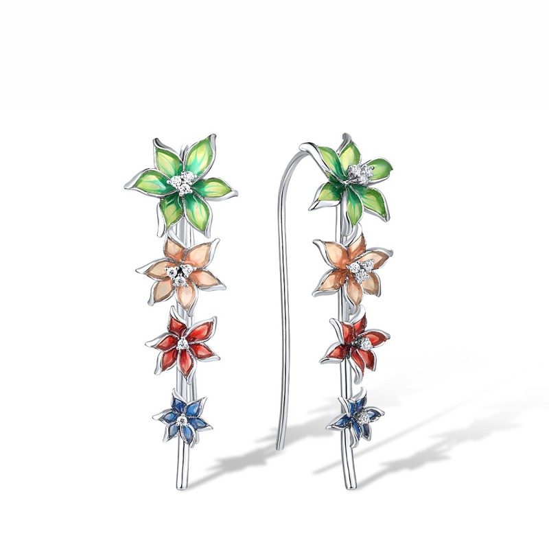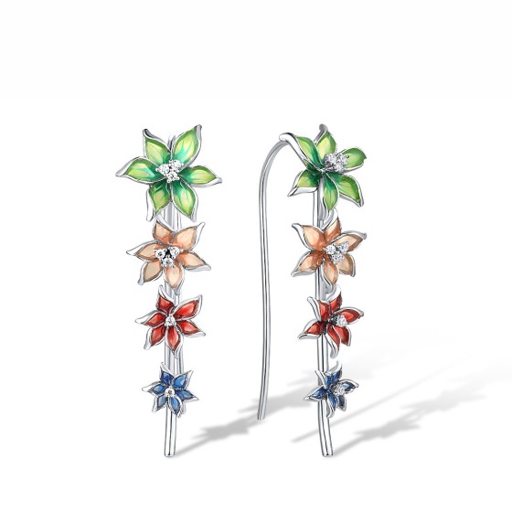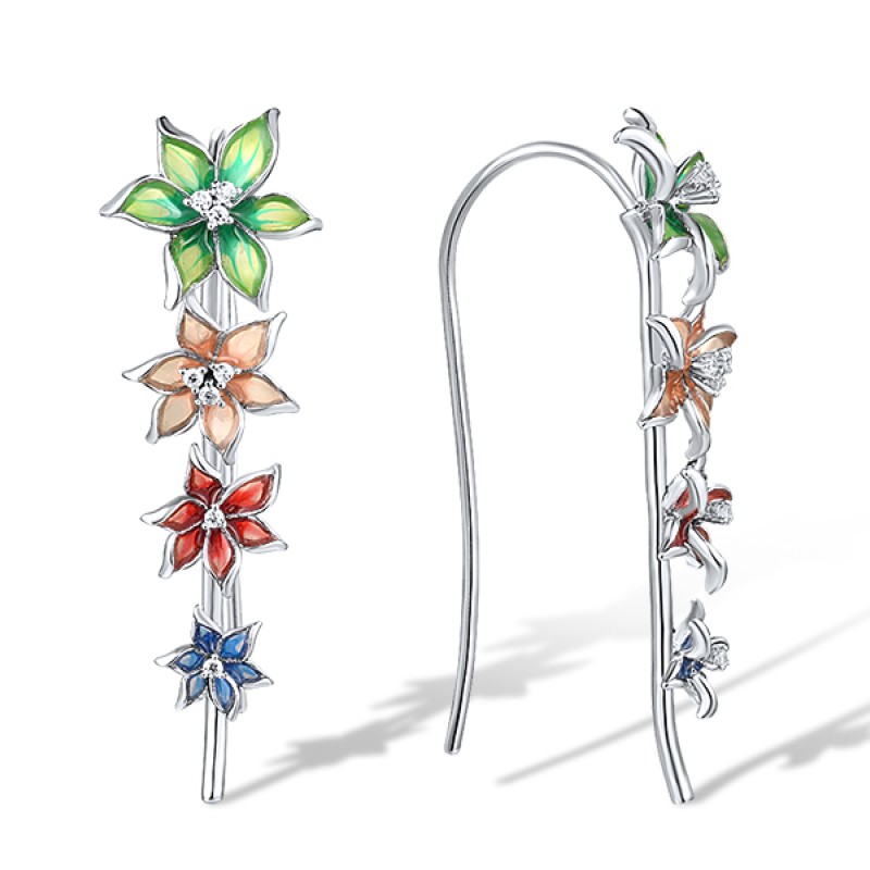 Sterling Silver Earrings Enamel,White Cubic Zirconia (E309681ENA5SL925)