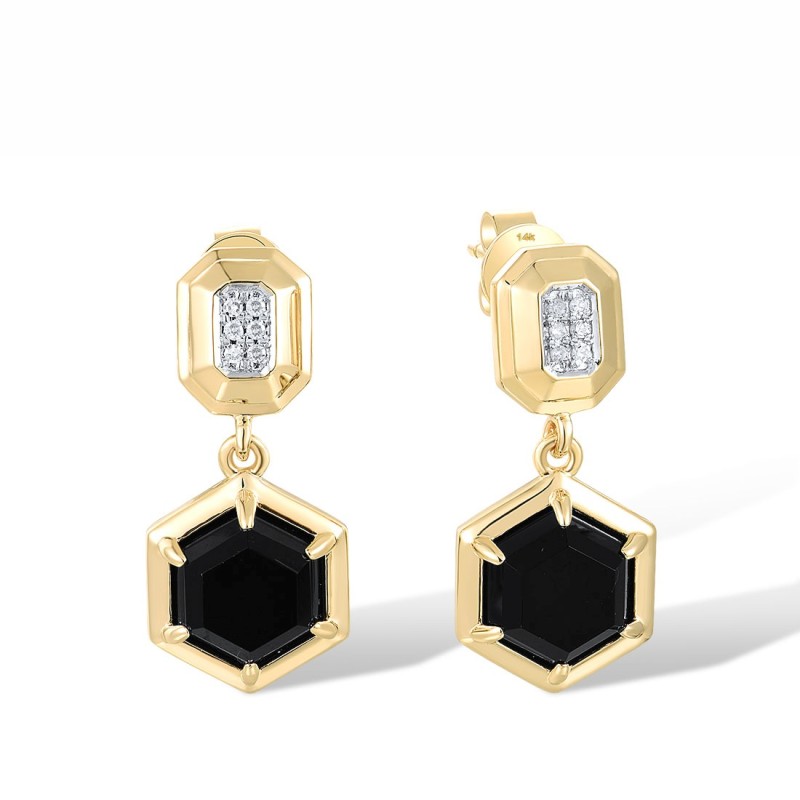 14KYW Earrings Black Agate,Diamond (E318622BAG14KYW)