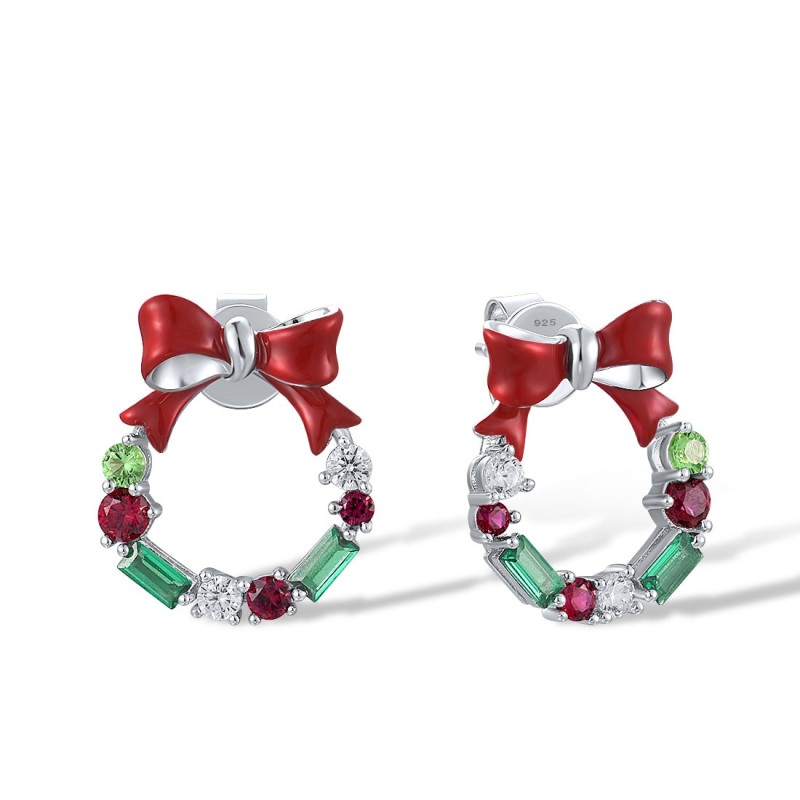 Sterling Silver Earrings Created Ruby,Enamel,Green Spinel,White Cubic Zirconia (E318608ENASL925)