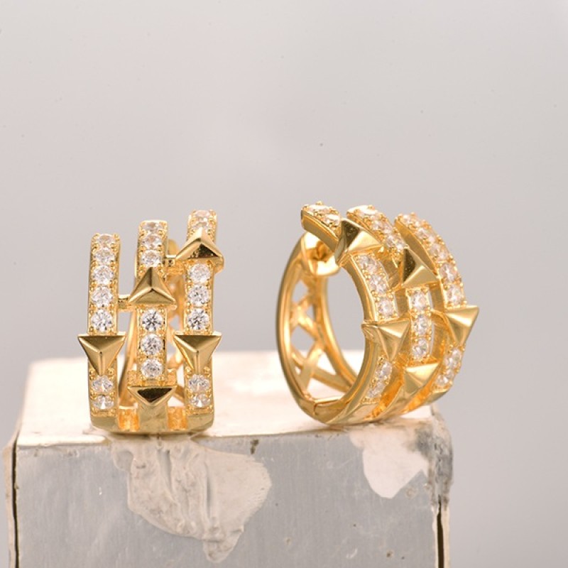Sterling Silver w/ Yellow Plating Earrings White Cubic Zirconia (E318430WCZSY925)