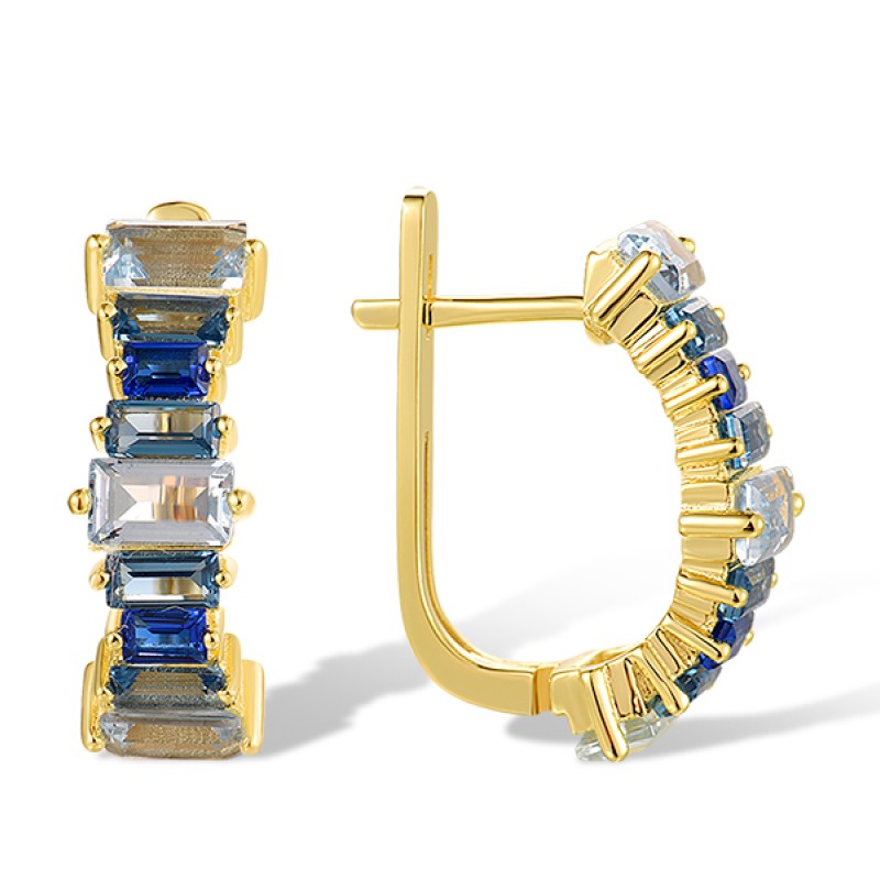 Sterling Silver w/ Yellow Plating Earrings Blue Spinel (E318416BLNSY925)