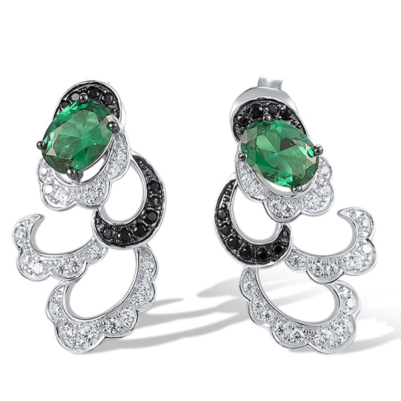Sterling Silver w/ Black White Plating Earrings Black spinel,Green Spinel,White Cubic Zirconia (E318392BGSZSK925)