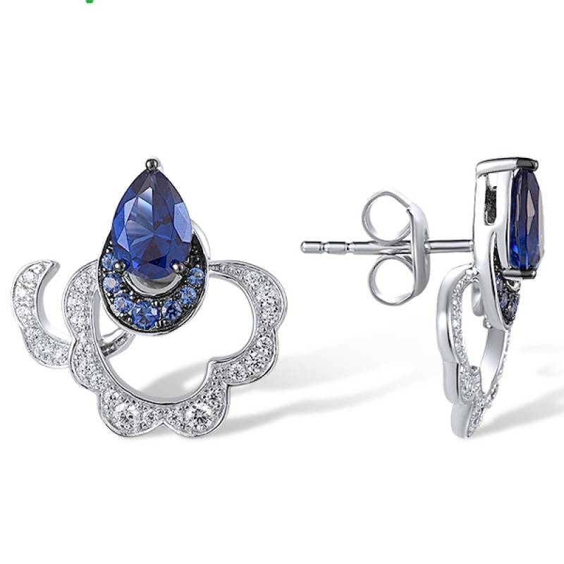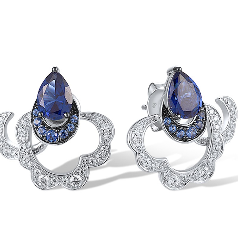 Sterling Silver w/ Black White Plating Earrings Blue Nano Cubic Zirconia,White Cubic Zirconia (E318391BZZSK925)