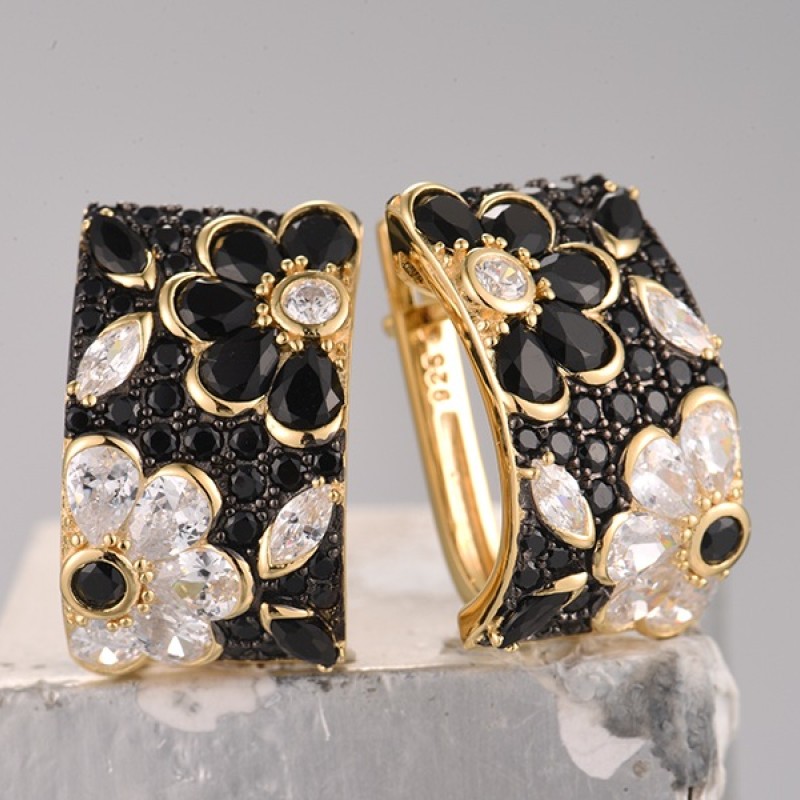 Sterling Silver w/ Yellow Black Plating Earrings Black spinel,White Cubic Zirconia (E318234BSNZSC925)
