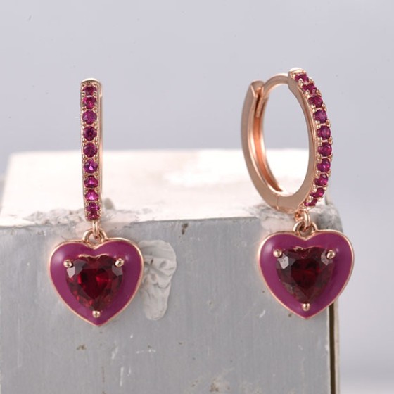 Sterling Silver w/ Rose Plating Earrings Created Ruby,Enamel (E318231ENASR925)