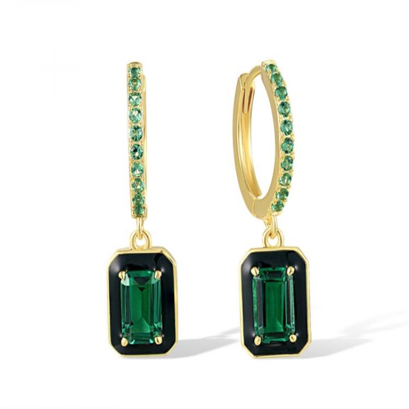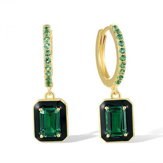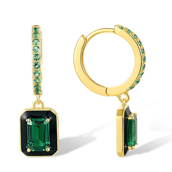 Sterling Silver w/ Yellow Plating Earrings Enamel,Green Spinel (E318230ENASY925)