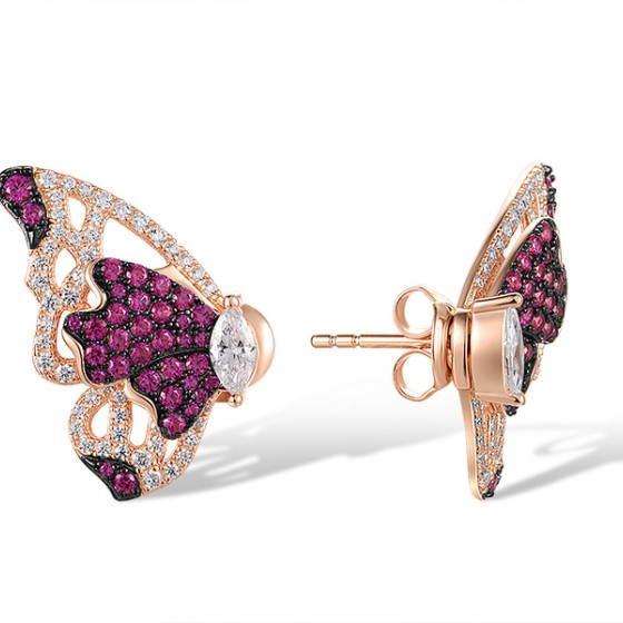 Sterling Silver w/ Rose Black Plating Earrings Created Ruby,White Cubic Zirconia (E317354CRZSD925)