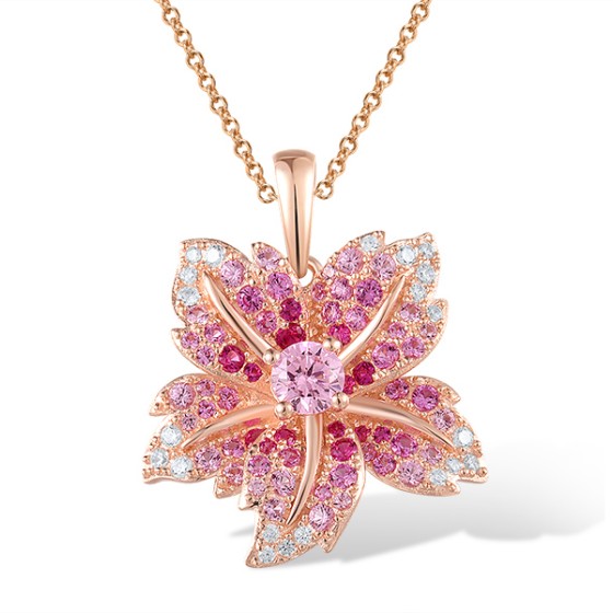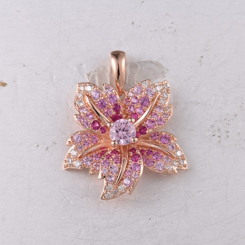 Sterling Silver w/ Rose Plating Pendant Created Pink Sapphire,Created Ruby,Pink Cubic Zirconia,White Cubic Zirconia (P316702MULSR925)