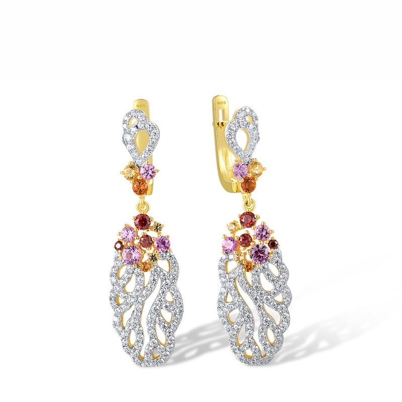 Sterling Silver w/ IONIC YELLOW PLATING Earrings Created Pink Sapphire,Garnet Cubic Zirconia,White Cubic Zirconia,Yellow Nano Crystal (E317897MUL1SP925)
