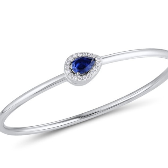 Sterling Silver w/ Black White Plating Bangle Blue Glass,White Cubic Zirconia (G311228BLGZSK925)