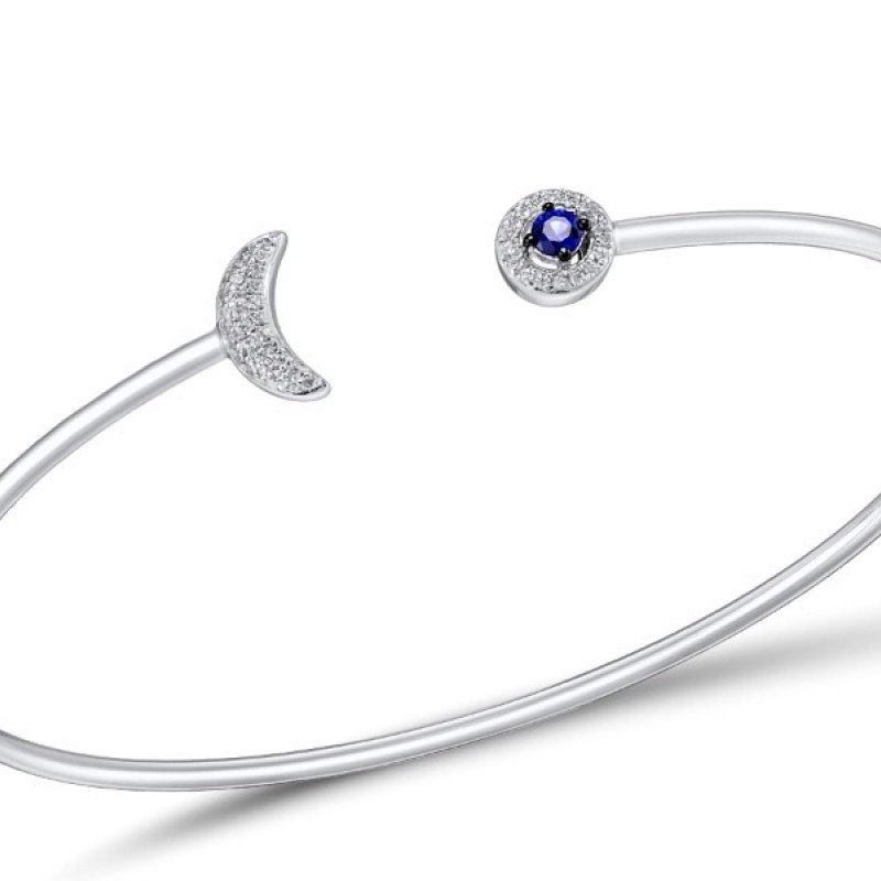 Sterling Silver Bangle Created Sapphire,White Cubic Zirconia (G309483CRSZSL925)