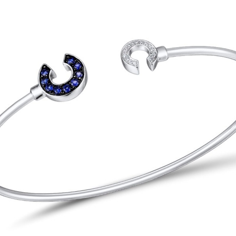 Sterling Silver Bangle Created Sapphire,White Cubic Zirconia (G309473CRSZSL925)