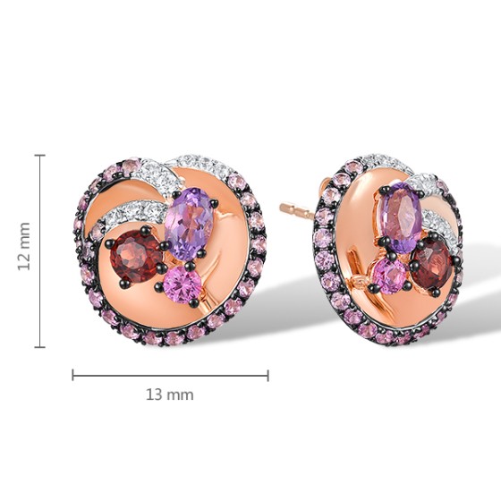 14K Rose Gold Stud Earrings with Amethyst,Diamond,Pink Sapphire,Ruby (E317461APSR14KRWB)
