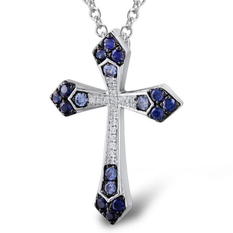 14KWB Pendant Blue Sapphire,Diamond without chain (P304870SAP14KWB)