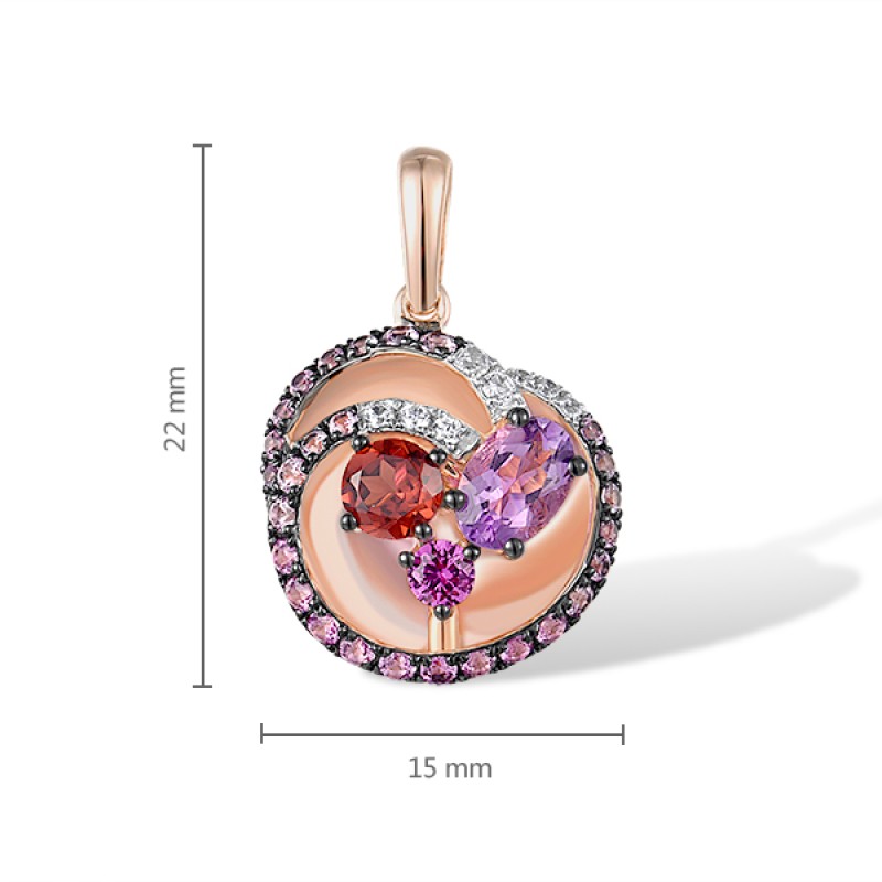 14KRWB Pendant Amethyst,Diamond,Pink Sapphire,Ruby without chain (P317461APSR14KRWB)