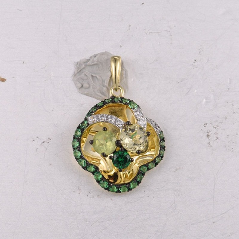 - Diamond 8pc 0.079ct ,Green Garnet 27pc 0.474ct ,Lemon Quartz 1pc 0.350ct ,Peridot 1pc 0.310ct