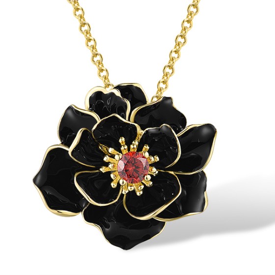 Sterling Silver w/ Yellow Plating Pendant Enamel,Garnet Cubic Zirconia (P314402ENA3SY925)