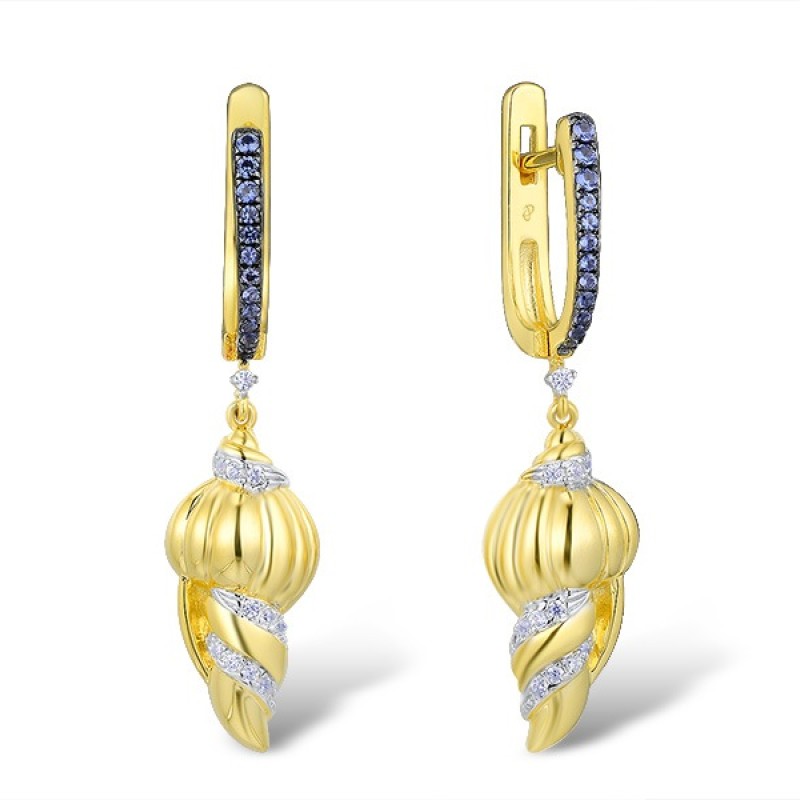 Sterling Silver w/ Yellow Black White Plating Earrings Blue Nano Cubic Zirconia,White Cubic Zirconia (E312845BZZSZ925-J)