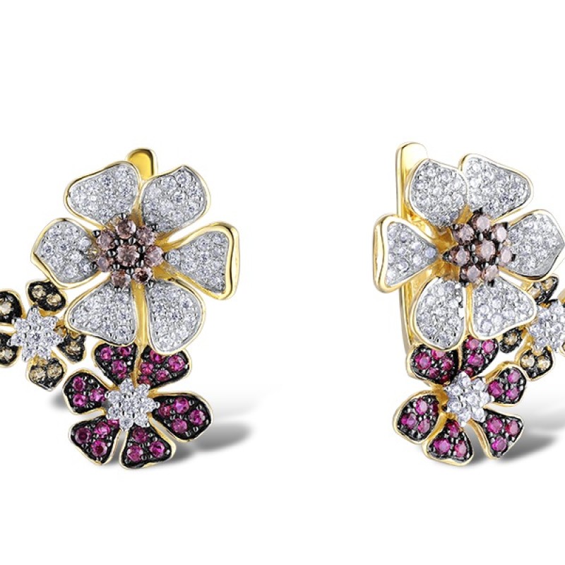 Sterling Silver w/ Yellow Black White Plating Earrings Yellow Nano Crystal,Created Ruby,Nano Brown Spinel,White Cubic Zirconia (E313093SMULSZ925)