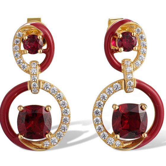 Sterling Silver w/ Yellow Plating Earrings Created Ruby,Enamel,White Cubic Zirconia (E318548ENA1SY925)