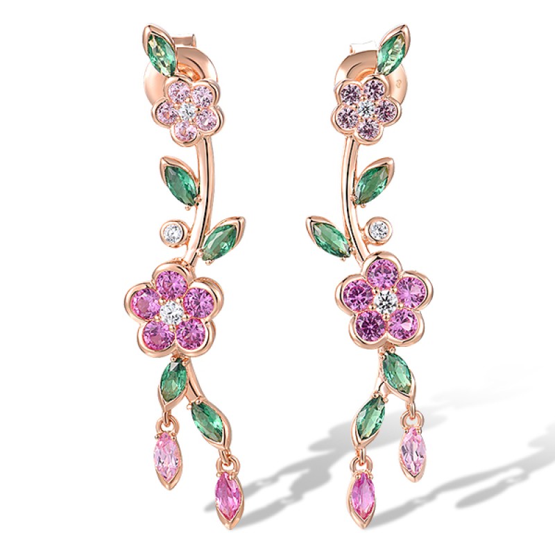 Sterling Silver w/ Rose Plating Earrings Created Pink Sapphire,Green Spinel,White Cubic Zirconia (E318582CPGZSR925)