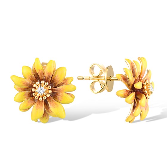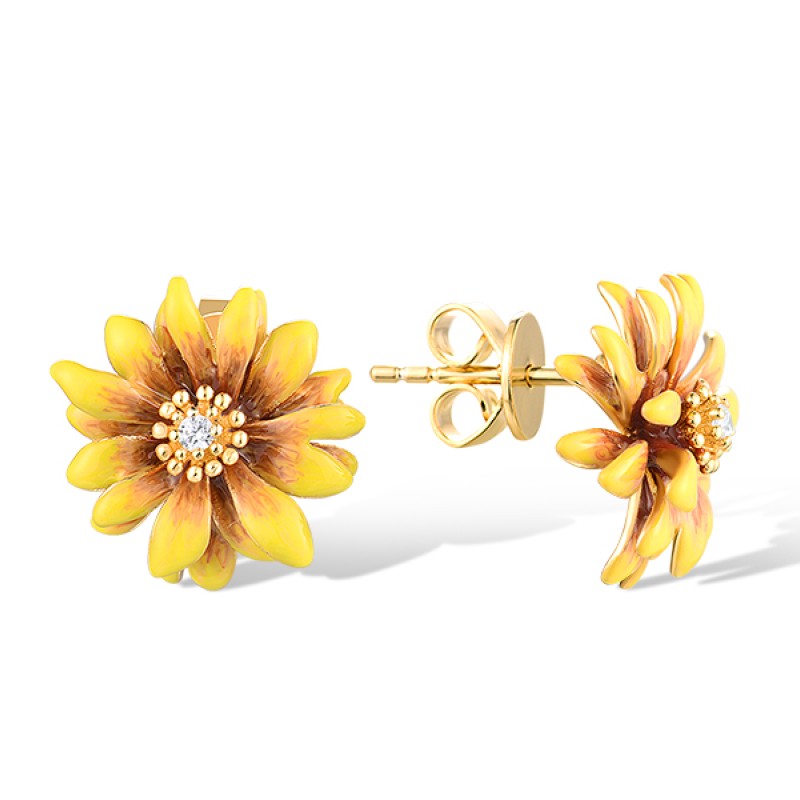 Sterling Silver w/ Yellow Plating Earrings White Cubic Zirconia,Enamel (E318616ENASY925)