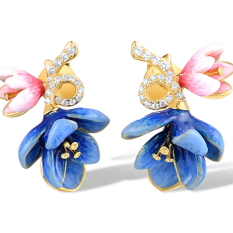 Sterling Silver w/ Yellow Plating Earrings Enamel,White Cubic Zirconia (E318620ENASY925)