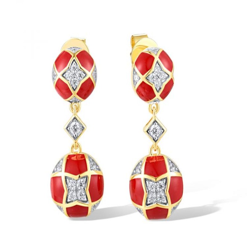 Sterling Silver w/ Ionic Yellow Plating Earrings Enamel,White Cubic Zirconia (E318630ENASP925)