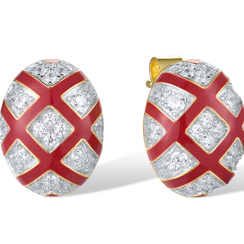 Sterling Silver w/ Ionic Yellow Plating Earrings Enamel,White Cubic Zirconia (E318633ENASP925)