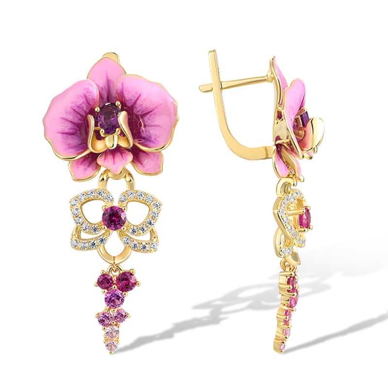 Sterling Silver w/ Yellow Plating Earrings Created Ruby,Enamel,Created Pink Sapphire,White Cubic Zirconia,Created Purple Nano Spinel (E318646ENASY925)