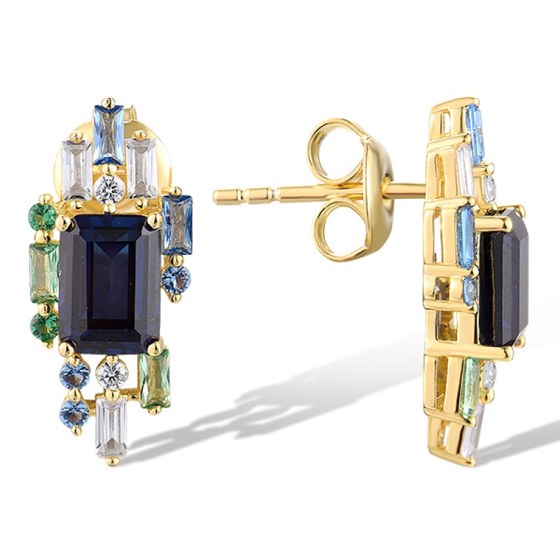 Sterling Silver w/ Yellow Plating Earrings Created Sapphire,Green Spinel,White Cubic Zirconia,Blue Spinel (E318732MULSY925)
