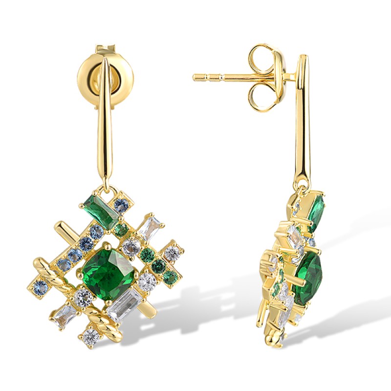 Sterling Silver w/ Yellow Plating Earrings White Cubic Zirconia,Blue Spinel,Green Glass,Green Spinel (E318737MULSY925)