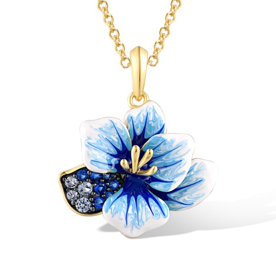 Sterling Silver w/ Yellow Black Plating Pendant Blue Spinel,Enamel (P316399ENASC925)