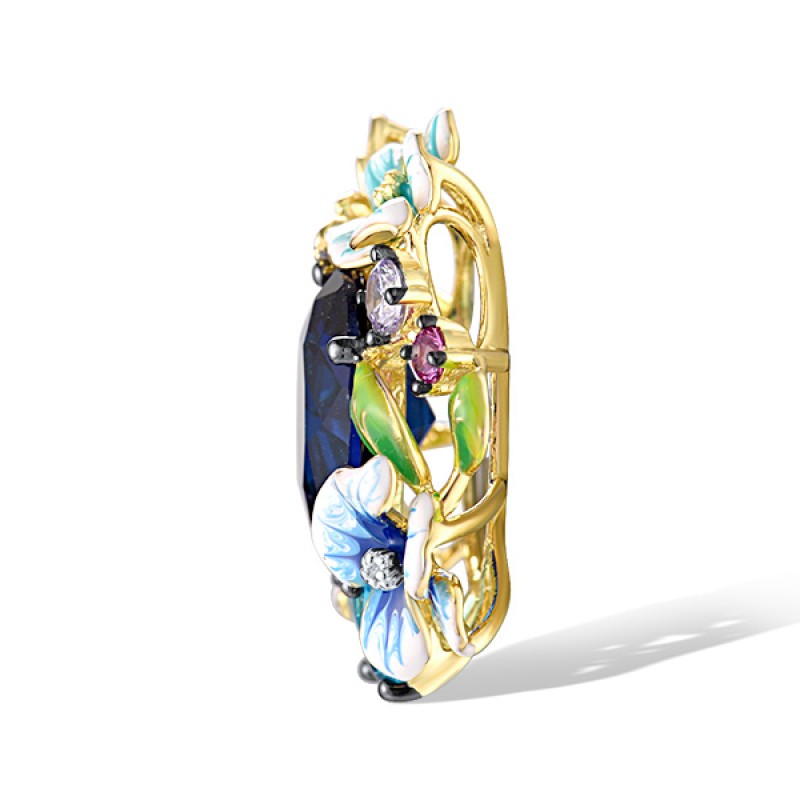 - Blue Glass 2pc 4.335ct ,Created Pink Sapphire 2pc 0.180ct ,Enamel,Green Nano Cubic Zirconia (Per 1pc 0.085ct ,Light Blue Cubic Zirconia 2pc 0.210ct