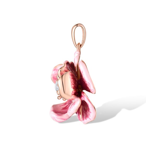 Sterling Silver w/ Rose Plating Pendant White Cubic Zirconia,Enamel (P318614ENASR925)