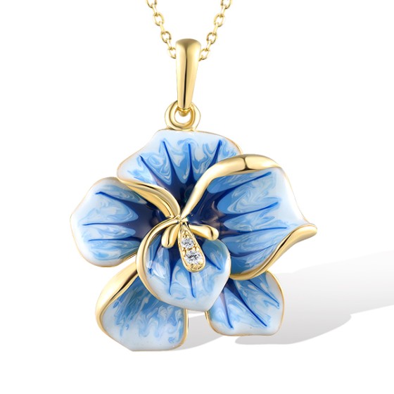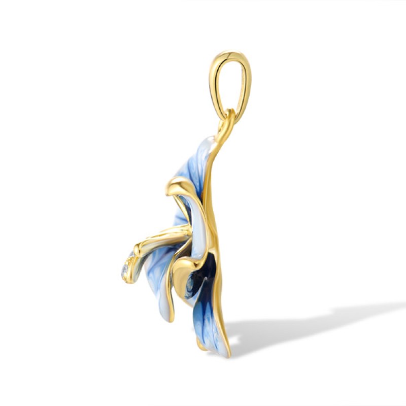 Sterling Silver w/ Yellow Plating Pendant Enamel,White Cubic Zirconia (P318615ENASY925)